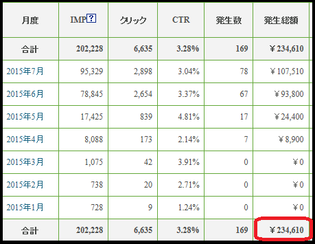 JUGEMテーマ:☆☆自宅でお小遣い稼ぎ☆☆ すみません!できれば最初に応援クリック夜露死苦お願いいたします!昨日、気がつきましたi-mobile for AFの成果合計が20万円を超えていることに!!その額234,610円!(7月14日現在)ちなみに2014年12月から始めています。そして成果が出始めたのが2015年の4月から。無成果の4ヶ月を経て今、成果を手に入れました。と言っても、実際のアフィリエイト歴は多分10年近いと思います(;´д`)10年でやっと何とかなってきたのです。もちろん、この成果がずっと続くとは思っていません。でも、確実...
