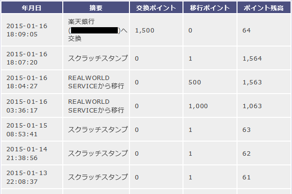 今年最初の換金。 合計:1500円(これまでの換金総額:5500円) 端数はスクラッチでちびちび稼いでた分です。 ほぼ毎日、げん玉のサービスと、PointExchangeでのスクラッチをして ポイントをためてますが毎日の作業時間は1時間くらい。 基本的にテレビを見ながら、音楽を聞きながらのながら作業なので、特に苦痛ではないです。 絶対毎日欠かさずやらなきゃ駄目ってわけでもないです(毎日やったほうがいいですが;) そのながら作業の積み重ねで、少しだけどお金が入るので楽しいですよ♪ ドラマとか見ながらちまちまお...