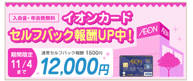 いつも利用しているA8.net の中のセルフバックと言うサービスでこんなのを見つけてしまいました!!A8.netのセルフバック経由でイオンカードを作ると12,000円がいただけてしまいます!!12,000円はいろんなアフィリエイトサイトまた、ポイントサイトを見ても多分最高値です!!しかし!!すでに私はポイントインカムでイオンカード作ってました・・・まだイオンカードをお持ちでない方は恐ろしくおすすめします!!JUGEMテーマ:☆☆自宅でお小遣い稼ぎ☆☆ imobile_pid = "32990"; imobile_asid = "296665"; ...