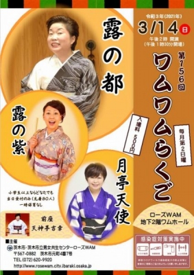 JUGEMテーマ:上方落語 というわけでこの会は 前座が素人さん(原則は都師匠の教室の生徒さん) プロが2席。今回は師弟とも「その後」が気になりましてな・・・ 「第157回・ワムワムらくご」 4月11日(日) 午後2時開演 茨木市立男女共生センターローズWAM 「松山鏡」 都亭てん歩(てんぽ) 実はこの方、昨年10月、茨木神社の素人落語の会で ご一緒したことがあります。「その時の記事」 堂々と落ち着いた語り口。 「平の陰」 露の瑞 8日の「アイドル愛落語会」で、棗ちゃんと2人でアイドルダンスを ...