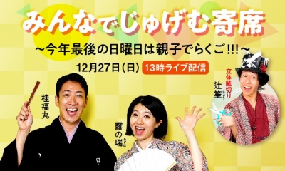 JUGEMテーマ:上方落語 桂福丸さん主催の子供向けオンラインイベントです。 「みんなでじゅげむ寄席」 12月27日(日) 13時配信開始 「平林」 露の瑞 子供むけということで「た〜いらばやしかひらりんか〜」は いつもの「天城越え」バージョンではなく、ごくスタンダード。 「寿限無」 桂福丸 大人になった寿限無くんは政治家になります。政見放送に臨みますが・・・ 「立体紙切り」 辻笙(つじ・しょう) 繁昌亭などにも出演されている現役大学生にして紙切りアーチスト。 彼のHPは「こちら」 「狸...