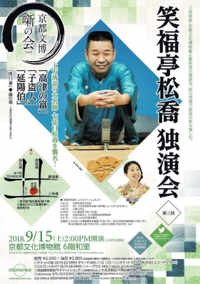 JUGEMテーマ:上方落語 「京都文博噺の会Vol.9~第3回・笑福亭松喬独演会」 9月15日(土) 午後2時開演 京都文化博物館(京都市営地下鉄「烏丸御池」) 6階和室 100畳ほどの大広間です。 ほぼ満席です。 「平林」 露の瑞 七代目松喬師の本格的独演会トップ これは「大抜擢」でしょう。 「京都女子大」卒ということで、京都ゆかりの 噺家でもあります。 「延陽伯」 笑福亭松喬 瑞ちゃんがトップで良かったと仰ってます。 昨今は、結婚式に「仲人」を入れるのが 全カップルの5%ほどなんだそうです...