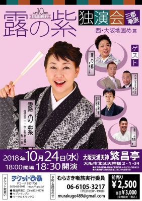 JUGEMテーマ:上方落語 露の紫さんが「入門10周年」ということで 3カ所で「独演会」を 故郷「今治」では大成功 「東京」は台風で延期 そして今日は「大阪篇」 10月24日(水)午後6時30分開演 天満天神繁昌亭 「ご祝儀」 露の都・紫 師弟による「祝い獅子」華やかに 「青い瞳をした会長さん(作・桂三枝)」桂三語 紫さんの1年後輩 「手向け茶屋」 露の紫 一席目は「強か(したたか)」な女を描きます。 江戸落語の「お見立て」です。 「松づくし〜寄席の踊り〜」 林家染雀 「松づくし」...