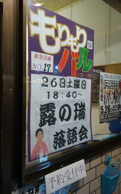 JUGEMテーマ:上方落語 第101回・千朝落語を聴く会」 5月26日(土)2時開演 太融寺 本坊2階 「道具屋」 桂小鯛 「口入屋」 桂千朝 この人ならではの「リズム」で 軽快に進みます。 「青菜」 桂南天 ほとんどスペースのない「押入」に 詰め込まれた植木屋の奥方は・・・ 「ながたん息子」 桂千朝 千朝師以外ほとんど演らない噺。 「親子」とななにか、考えさせられる 大作です。 そして、夜は 「もりもりバル」とは、守口市内の飲食店などが 共同で開催するイベント。500円でパスポートを...