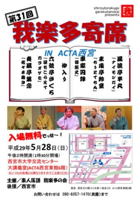 JUGEMテーマ:上方落語 昨日の「第98回・高槻市民寄席」において 「前説」で三流亭志まねさんが告知された内容が すっぽり抜けてますね。 ?今回はケーブルTV「J:COM」が取材に来られました。 で、この寄席の模様が5月24日(水) 「J:COMデイリーニュース」で放送されます。 高槻市、島本町にお住まいで「J:COM」にご加入の方 ぜひご覧ください。 ?当会と友好関係にある「我楽多の会」の 定例会が5月28日(日)開催されます。 当会の「六弦亭ざくろ」さんが出演します。 皆様のお越しをお待ちして...