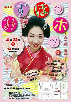 JUGEMテーマ:上方落語 「第4回 みずほのホッ。〜露の瑞勉強会」 4月22日(土) 14時開演 動楽亭 会場はほぼ満員です。 「時うどん」 月亭遊真 「道具屋」 露の瑞 「ねずみ」 桂雀太 中入り 「高津の富」 露の瑞 三味線 はやしや福 というわけで、今回は「高津の富」がネタおろし 気合いたっぷりの熱演でした。