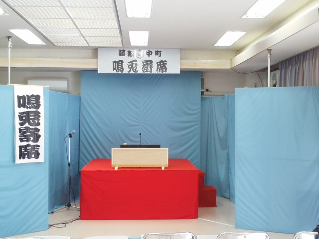 JUGEMテーマ:上方落語 昨年に引き続き 今年も「城北迷人会」と「噺の会じゅげむ」 合同による出前寄席です。 舞台を経験されてる 自治会長がこしらえた 見事な高座です 開演前から 次々とお客様が 詰めかけます。 楽屋で出番に備える 城北迷人会のみなさん 自治会の方々の 「おもてなし」に感謝 開演前のあいさつは 自治会長です。 今年も大忙し 音響、高座番、そして・・・ 「開口一番(相撲甚句)」 高大家緑生(城北迷人会) 今場所「綱取り」をめざす 「豪栄道讃歌」です 「いもりの黒焼き...