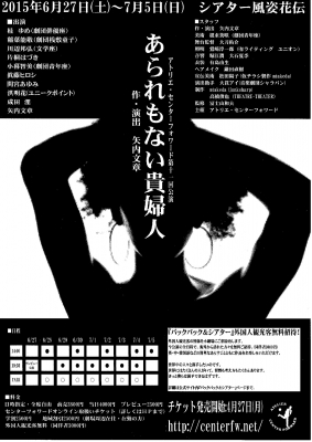 すでに昨日ですが、 アトリエ・センターフォワードの次回公演情報が更新されました。 6月27日(土)〜7/5(日)までシアター風姿花伝で上演されます。 写真は貴重な5000部仮チラシです。 手に入れた方には多分幸運が!(笑) チケット発売日は4/27(月)!! まもなくです。 とはいえ月末ですけどね。 詳しくはアトリエ・センターフォワード公式サイトまで! http://centerfw.net/ JUGEMテーマ:舞台鑑賞