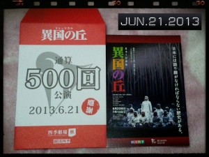 本日、通算500回目の公演を迎えた異国の丘記念のカードを頂きました。