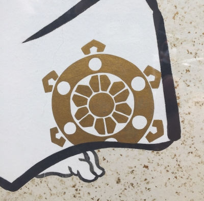 JUGEMテーマ:水引工芸 JUGEMテーマ:歌舞伎 久々の一日初日!!! 納涼祭とはまた違った雰囲気のお客様がいらして、 木挽町広場も 秀山祭らしさのある?景色に感じました。 画像は歌舞伎座玄関前の絵看板から 勧進帳の武蔵坊弁慶の衣装裾部分であります。 いわゆる「輪宝」紋でありまして、密教や修験道にゆかりが深く、不動明王にも御縁の文様にして、 家紋としての伝承もある意匠であります。 絵看板は...