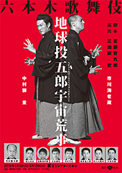 雨も降って寒い一日でしたが、ついにこれを観る事が出来ました! EXシアター六本木にて、『六本木歌舞伎 地球投五郎宇宙荒事』です。ちなみに「ちきゅうなげごろううちゅうのあらごと」と読みます。 市川海老蔵×中村獅童×宮藤官九郎×三池崇史と来たら「これは面白くなりそうだ」と思うのは当然。そしてその通りに面白いらしいという噂は伝わって来ておりましたので、最終日手前の今日しか都合がつかなかった私は「早く観たいよぉ〜、何かあったらどうするんだ〜」とヤキモキしていたのでありました。