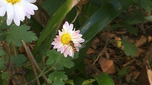 JUGEMテーマ:昆虫写真 蜂によく間違われるホソヒラタアブだと思われます。大きさは1cmぐらいで人は刺さないようですね。幼虫の時期はアブラムシを食べるそうなので、ガーデニングなどをなさってる方には益虫になるのかな。