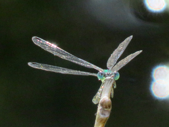 JUGEMテーマ:昆虫写真 行きつ戻りつしていたイトトンボ。 やっと枯草に止まってくれました。 細すぎてピントがなかなか合いません。 ゆらゆら揺れていたのが奇跡的に静止してくれました。 私を見てる?・・・美しい透明な青い目♡♡