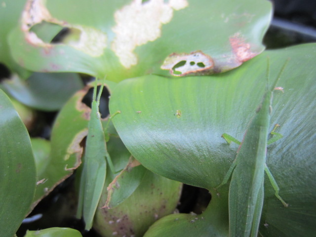 おんぶしてない2匹の「オンブバッタ」見っけ! メダカの水槽の日陰用のホテイアオイなので これ以上食べられない様に ご退場お願いしました そぅ言えば 近頃〜オンブバッタやトノサマバッタやショウリョウバッタは 見かけても 「イナゴ」は中々お目にかかれない ひと昔前まで 「イナゴの佃煮」って ゲテモノでは無く普通に食べられていたので 人間に食べ尽くされてしまったからなのか? イナゴは食べて、バッタの類いは何故食べないのか? イナゴは稲を喰い荒らす害虫で バッタは菜食主義者なのが大きな理由で バッ...