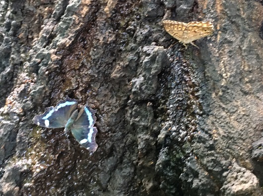 JUGEMテーマ:昆虫写真 樹液に集まる蝶たち。下の蝶はルリタテハ。上の蝶はわかりませんでした。蝶は種類によって食物が異なるそうです。花の蜜、樹液、動物の排泄ぶつ、腐った果物など。