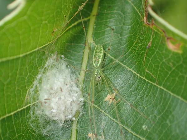 近所の雑木林の周辺でオダカグモと同じくらいよく見かけるのがウロコアシナガグモです。 (超普通種のジョロウグモは除くと…) ちょっと前までは卵のうを守っている母グモをよく見かけました。 昼間は葉裏に潜んでいることが多いようですが、夜になると多くの個体が小さい円網を張っています。 網を張らずに糸にぶら下がっている個体もありますが、あれは一晩中張らないのでしょうか。 7月の末から8月に見かけたウロコアシナガグモたちをまとめました。 まずは、昼間の様子を…。 クヌギの葉の上で卵のうを守るウ...