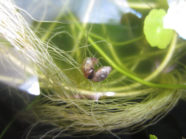 〔 スネール(サカマキガイ) 〕 我が家の黒メダカの住居の同居人、 呼び込んだ覚えも無いのに 勝手に住み着いている! しかも、今朝交尾を目撃しちゃった 水槽内のコケや食べ残しのエサを 掃除してくれる有益な生物のはず。。。 しかし〜見栄えの悪さや爆発的に増殖するらしく 駆除の対象なんだなぁ〜 JUGEMテーマ:昆虫写真