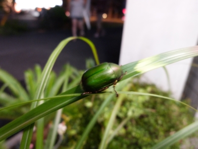 ♪〜コガネムシは〜金持ちだぁ〜 ♪〜金蔵建てた蔵建てたぁ〜♪ 何で コガネムシは金持ちなの? この歌を作詞した 明治生まれの歌人野口雨情さんの大勘違いで 「ゴキブリ」を「コガネムシ」と 間違えたらしいのです!ゴキブリが卵を沢山抱える姿が 野口さんの目にはブルジョアに見えたのでしょうかね? ゲゲゲッ! 正確には ♪〜ゴキブリは〜金持ちだぁ〜 ♪〜金蔵建てた蔵建てたぁ〜♪ 。。。なの? 海酔店前で コガネムシの写真を撮っていると・・・ あっ!まりちゃんが歩いてご来店です! ”コンバン...