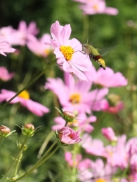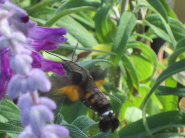 大透翅=オオスカシバ 見っけ! ブゥ〜〜〜ン耳障りな大きなホバーリング音たてて 忙しく飛び回る為 撮影困難! スズメ蛾科に属する 蛾の仲間だけれど・・・ 長いストローで蜜を吸う姿や飛び姿はハチドリの如く カラーリングや毛深さは蜂にも見え おっかない虻ににも似ている 蛾のくせに〜鱗粉がなくトンボやセミの様な透かし翅 怒っている様な瞳は魚、翅をもいだ形を想像すると・・・ わっ! エビフライ! 何とも〜不思議ちゃん JUGEMテーマ:昆虫写真