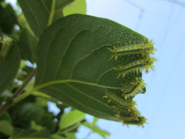 憎っくき ≪≪ イラガ ≫≫ 大発生! 大好きな柿の木の葉っぱの下で 集団待機中 全身トゲトゲ完全武装でいつでも戦闘態勢ばっちり ”近づいたら 刺すぞ!”って言わんばかりの棘。。。 別名 デンキ虫 その名の通り刺された瞬間に 電気がはしり その後強烈な痒みに襲われる *** この季節〜柿の木にはご用心! *** JUGEMテーマ:昆虫写真