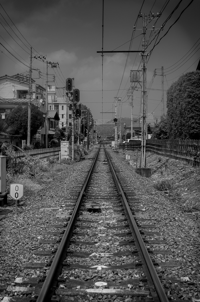JUGEMテーマ:モノクロ 山に向かって真っ直ぐに伸びる単線の線路 夏に感じるノスタルジックな風景
