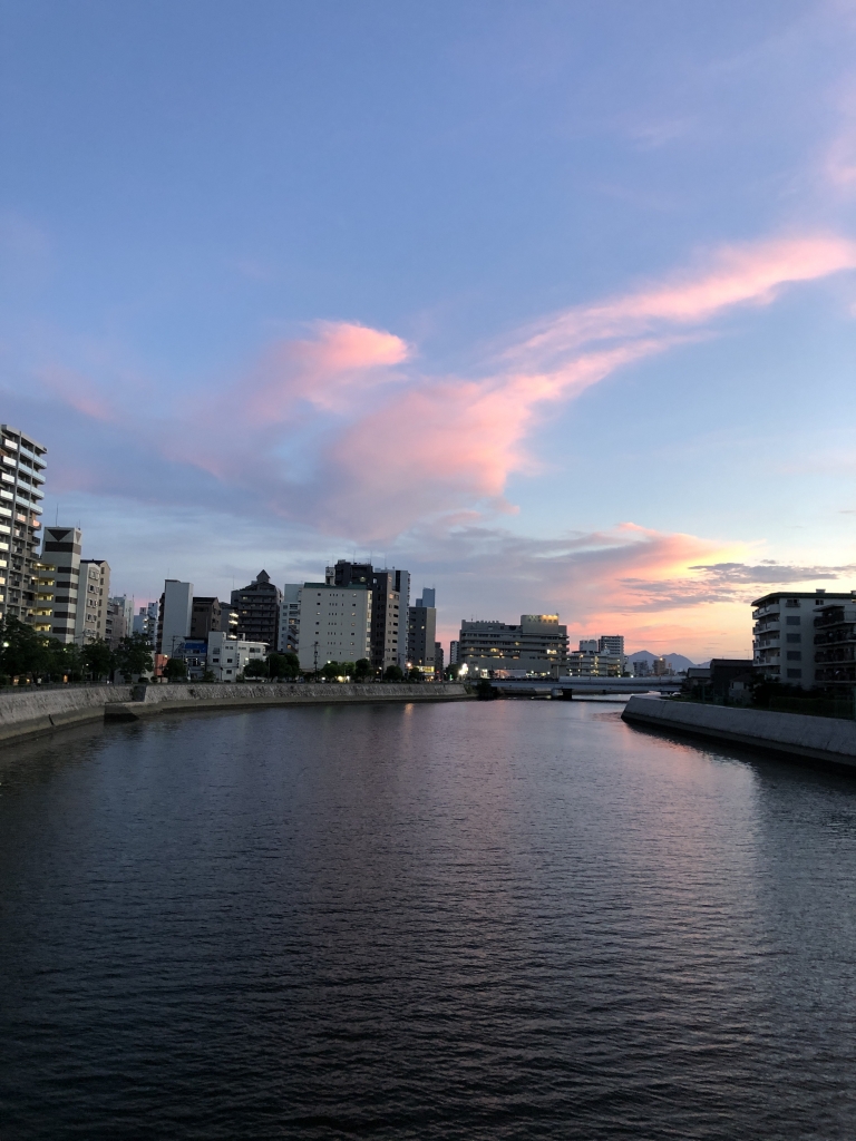 JUGEMテーマ:空の写真 今日もきれいな夕焼けでした。写真は天満川に架かっている観船橋から南方面を撮りました。コロナ自粛で運動不足になっているので毎日歩いています。虫や鳥の声を聴きながら歩くとストレスが取れますね。。ヒグラシや山鳩も鳴いてます。。 にほんブログ村 人気ブログランキング