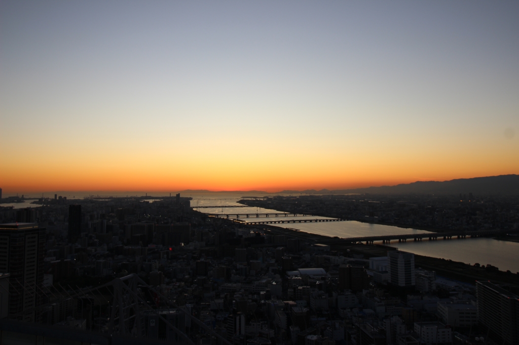 JUGEMテーマ:空の写真 梅田スカイビルからの大阪湾の夕景です。 日没後に、夕焼けの空の色はどのように変化していくのでしょうか?超広角レンズで撮影しています。空の色の移り変わりをお楽しみください。 ?日没直後 日没直後です。奥に淡路島が見えています。淀川にも空の色が映りこみます。 ?日没5分後 日没約5分後。地平線上の「赤とオレンジ」がぐっと広がります。 ?日没10分後 ここから空...