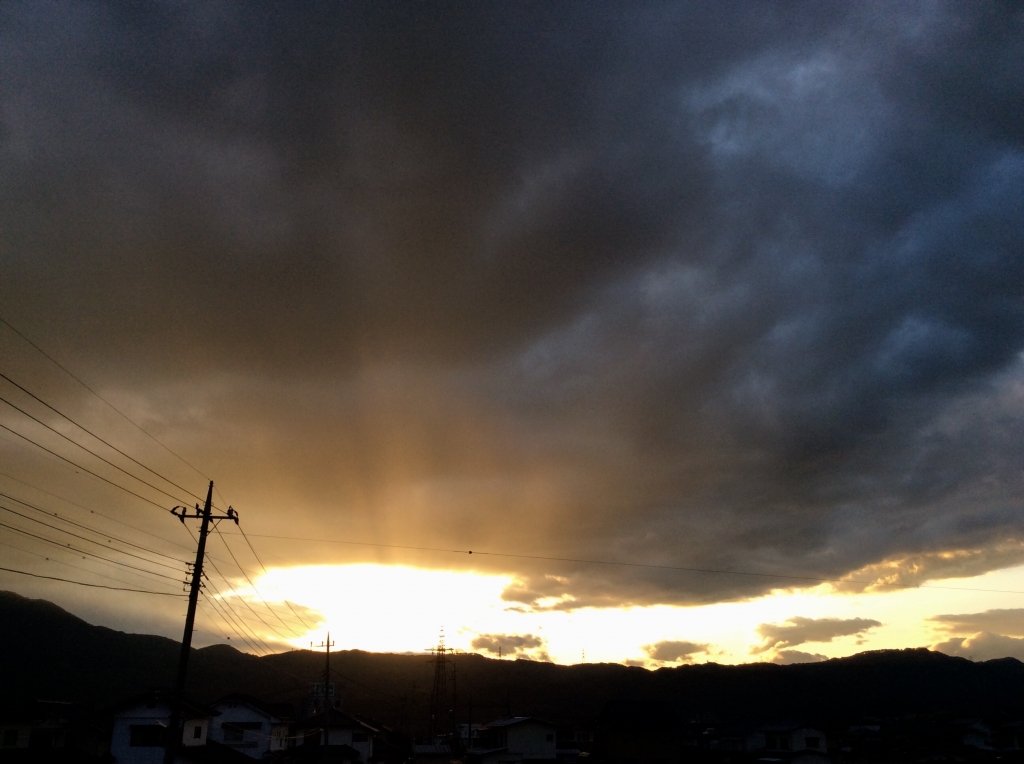 JUGEMテーマ:空の写真 厚い雲にぽっかり穴が開いた 洞窟の中に光が差し込んだような空 青空も見える 写ってないんだけど イメージしてみてね 余力 十分の光が 穴を広げながら 黒い雲を押し上げていく 空を覆っていた黒い雲は 山際から離れた さっきまでの空が嘘みたい 空はうっとりするほど 美しいグラデーション これが素顔の空 いいなぁ キレイ… &nb...
