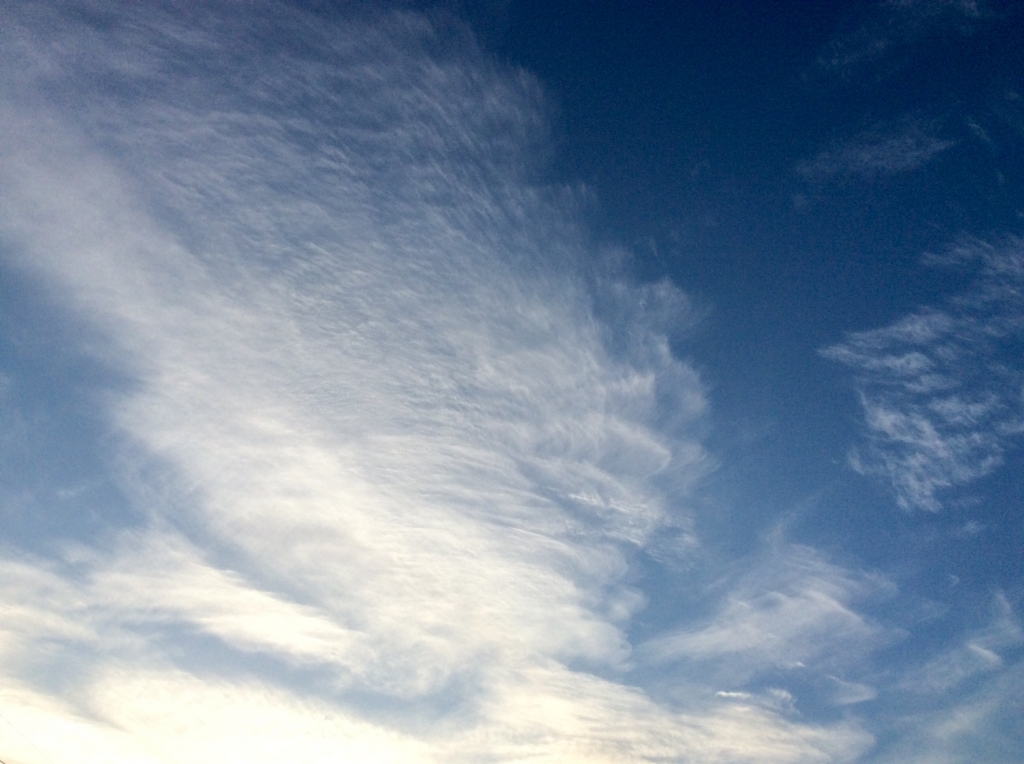 JUGEMテーマ:空の写真 真っ白なモヘアみたいなすじ雲が 西から東へと縦断してる 幾すじもの雲は 大空を流れる大河のよう 視線を移動する 左から右 右から左 前から後ろ 大きすぎて ひとすくいしか出来なかった ちょっと残念な絵… こんな空は 仰向けに ひっくり返って眺めるのが一番 その気持ち良さは 庭と畑で経験済みだもんね〜 一瞬 頭の中で この間の娘の声がよぎる 「 お願いだから絶対 道路には寝ないで! ...