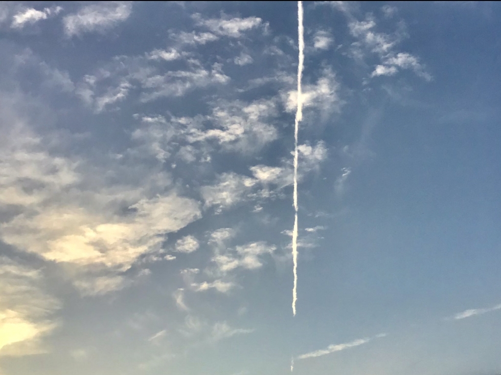 JUGEMテーマ:空の写真 朝 窓を開けた あ!飛行機雲! 庭に出た あ!飛行機雲! 畑に出てグルリと回った 飛行機雲が賑やかですね 今日は一体 何の日かな あ!飛行機! 白いスジをスイーっと引いて 東の空に消えて行った ※ランキングに参加しています ご迷惑でなければこの下の バナーにタップして頂けると 嬉しいです &...