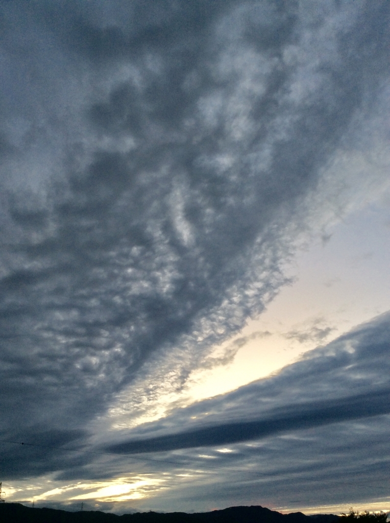 えJUGEMテーマ:空の写真 重く垂れ込めていた雲が 真綿を引き伸ばすかのように ホロホロと裂け始めた その裂け目から垣間見えたのは 晴れた虹色の夕空 ホロホロと裂けてゆく雲のモト 山の稜線も いつもより遠くに感じる なんて魅力的な構図 写真には収まらない この素敵なショーを ほんのチョット独り占め 舞台の幕が開きましたよ ※ランキングに参加...