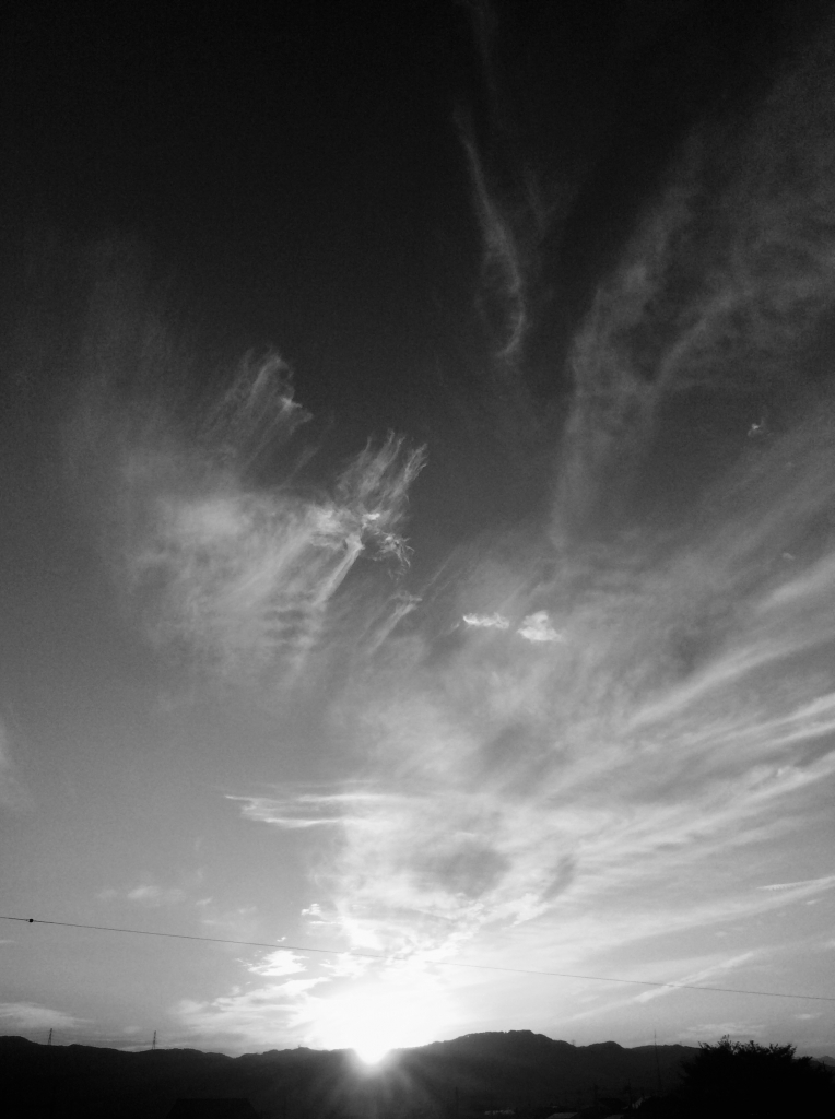 pJUGEMテーマ:空の写真 まるで 空を泳ぐサカナ 陽の光に導かれて 山の向こうまで泳いでいきそう 夕陽に染まったら やっぱり 赤くなるのかな それとも ピンク? オレンジ? 黄色? もしかして虹色? 物語が始まりそうな ステキな空 陽の差すトコロへ 私も導かれて生きたい 空・雲写真ランキング