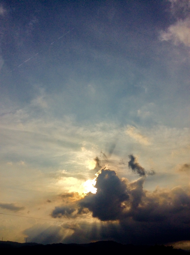 JUGEMテーマ:空の写真 ヤコブの梯子だ! 夕焼け 期待できるかも 残念 夕焼けしなかった ※ランキングに参加しています ご迷惑でなければこの下の バナーにタップして頂けると 嬉しいです ↓↓↓ にほんブログ村 人気ブログランキング