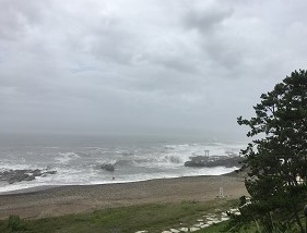 曇った空 荒れた海… 茨城の大洗の写真いただいた♪ でも なんか 和む景色だなぁって、、。 後で知ったけど 磯の中に鳥居があるんだよ? さて。台風が近づいているんだろうか! 気圧のせいか 頭痛かったけど(;´・ω・) 冷やせば治った(´u`*) 皆様もお気をつけて。。