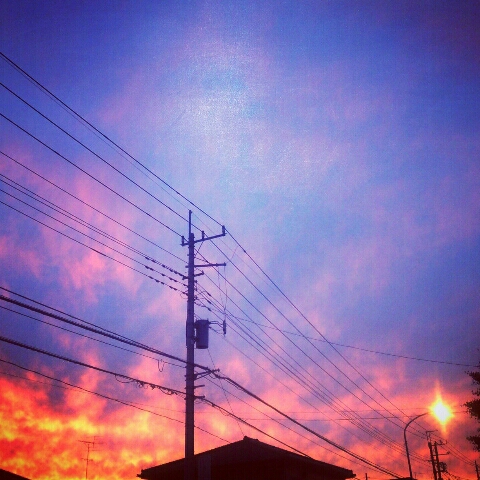地元に着く頃、空が紅かった。 燃えるような、妖しい空色。 何かの前兆? 何かへの警告? 思わず、ネガティブな方に考えがちだけど キレイな、キレイな、見惚れる空だったなあ。 これから、ますます、空を見上げるのが楽しみ。