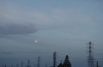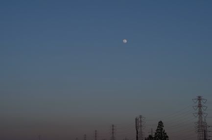 JUGEMテーマ:空の写真 暑かった今日 月が上っている青い薄闇の東の空 写真DATE シャッタースピード 1/80 F値 10 // 55mm ISO 100 now listening music : REBEL FAMILIA