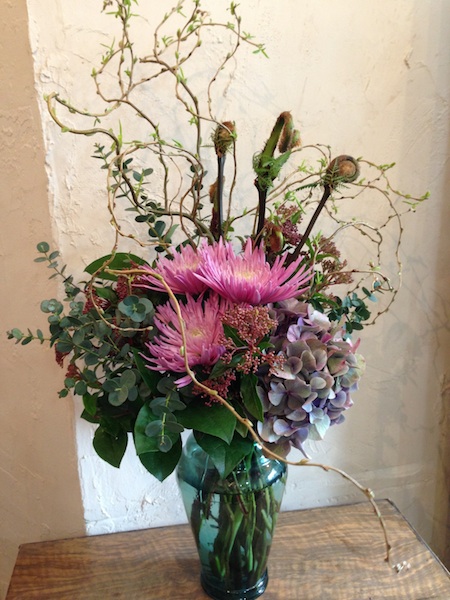 JUGEMテーマ:flower* 今回も、可愛いお花のアレンジメントがとどきましたよ 高さがあってステキですよねぇーー アンティークアジサイ 個人的にはこのアジサイ、ホントに好きなんですよねぇ ピンク色の菊&その下にある小さなつぶつぶ→ガマズミ 緑色の大きな葉っぱ→レモンリーフ ぐるぐる巻きのゼンマイ 右奥はユーカリ&雲龍柳(うんりゅうやなぎ) いつもありがとうございます ★ Pure Soul ★ facebookやってます♪ http://t.co/mgRE2Oea 是非【いいね!】をpush ...
