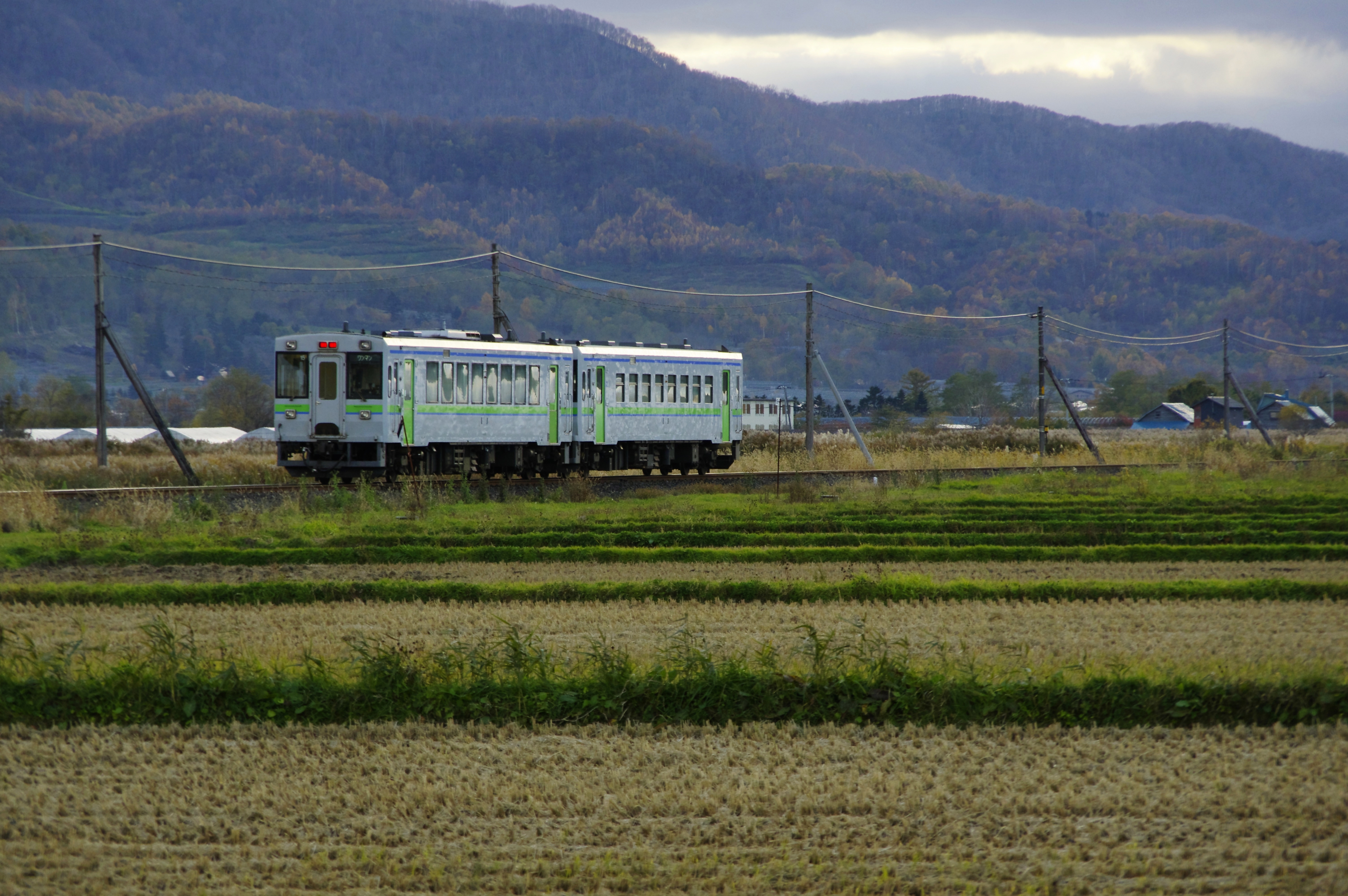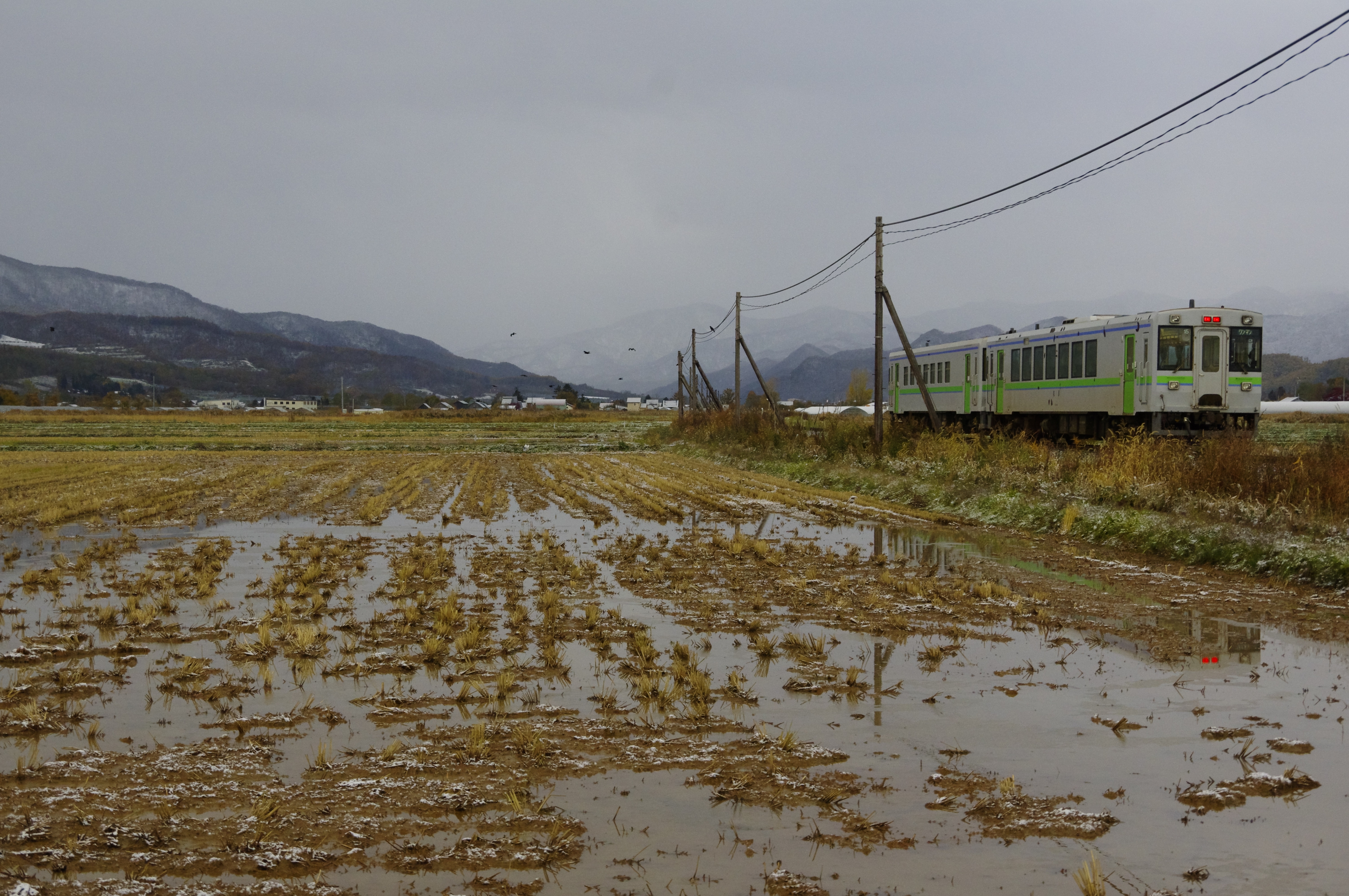 JUGEMテーマ:鉄道写真 こんにちは! 11月7日は初雪が降りました。会社からの帰り道でも積雪があったので、翌日は完全な雪景色には程遠いとしても山や畑には雪が積もったりしているだろうと思い、いつも行く余市−仁木間の撮影ポイントへ愛息と2人で行って来ました。 撮影ポイントに到着したらすぐにキハ201 快速ニセコライナーがやってきたので、それは撮らずに愛息を抱っこしてお見送りしました。そしてその快速ニセコライナーと余市駅で交換して然別駅へと向かう1928Dを撮影しました。 ...