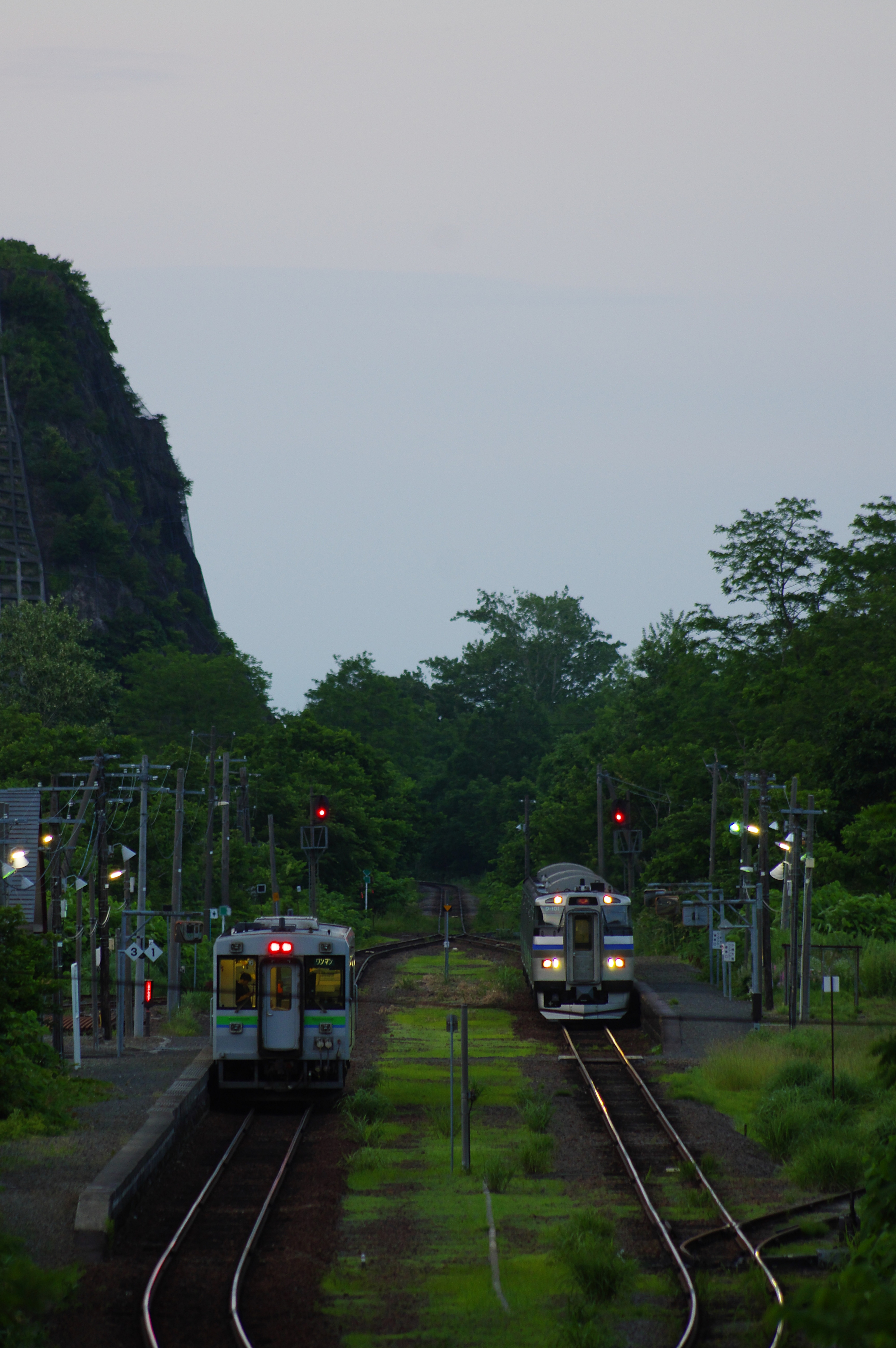 JUGEMテーマ:鉄道写真 こんにちは! 昨日は仕事を終えた帰り道の途中で然別駅へ寄ってみました。毎日の通勤で余市町のシリパ岬方面が夕焼けになるのがわかっていたので、然別駅であればそちらの方向にレンズを向けて3954D・倶知安行の快速ニセコライナーを撮ることが出来るのではないかと思ったワケです。 その快速ニセコライナーの然別駅到着は19時13分です。一足先に長万部発小樽行の普通列車・2953Dが然別駅に到着して、ニセコライナーの到着を待っています。ちなみに2953Dはキハ150で...