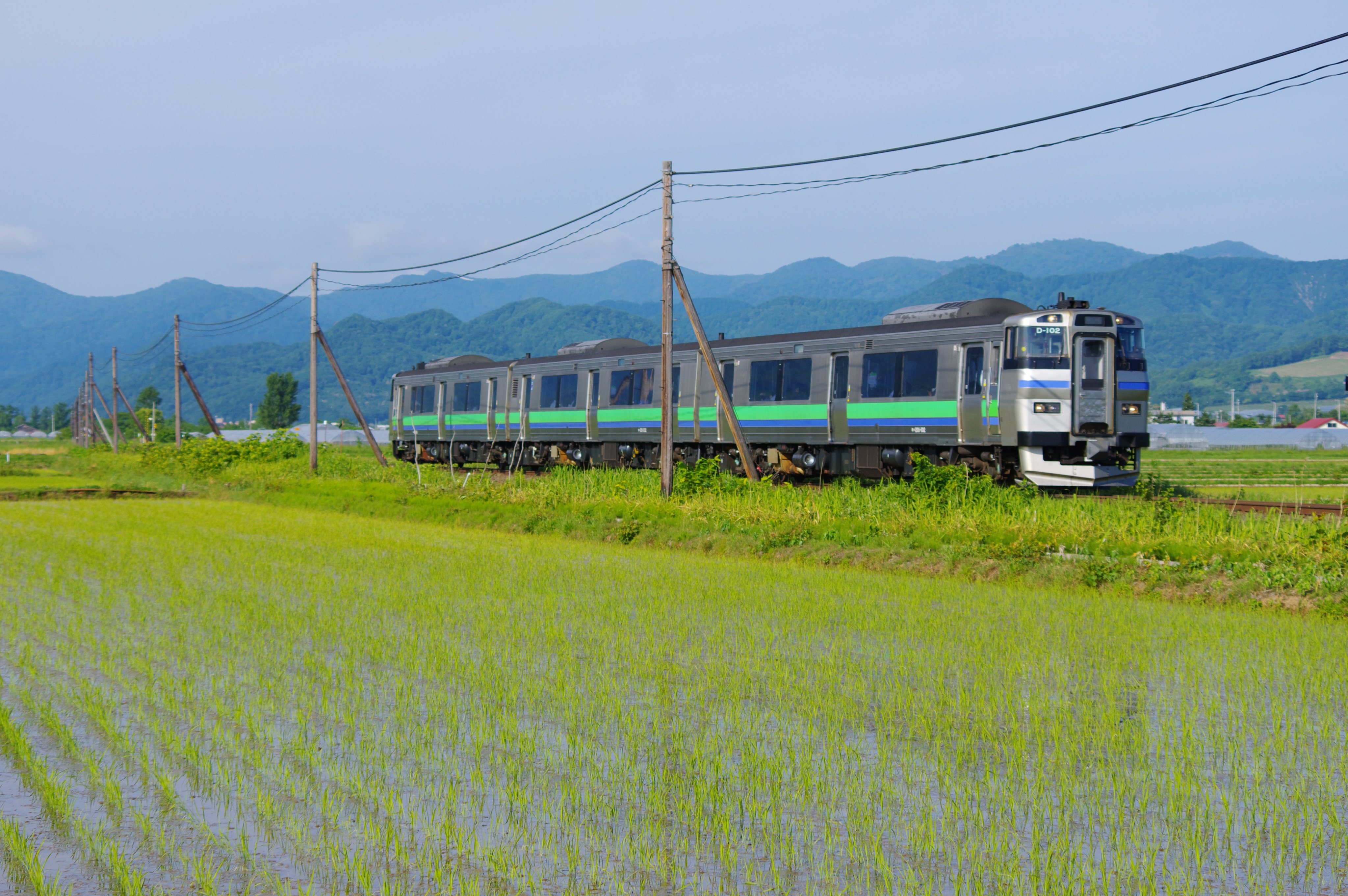 JUGEMテーマ:鉄道写真 こんにちは! 今週は朝から快晴という日が未だなくて、毎日早起きな愛息とキハ201の撮影に出かけることができていません… 逆に先週は割と天気の良い日が多く、6月11日はゴミ出ししたその足でいつもの仁木−余市間の水田ポイントへ行き、963Dを撮影しました。 F5.6、1/1250秒、ISO200、82mm、露出補正±0、WB AWB、カスタムイメージは「風景」で撮影。稲が少し成長したことで緑が多くなってきました。その緑が濃く出るように...
