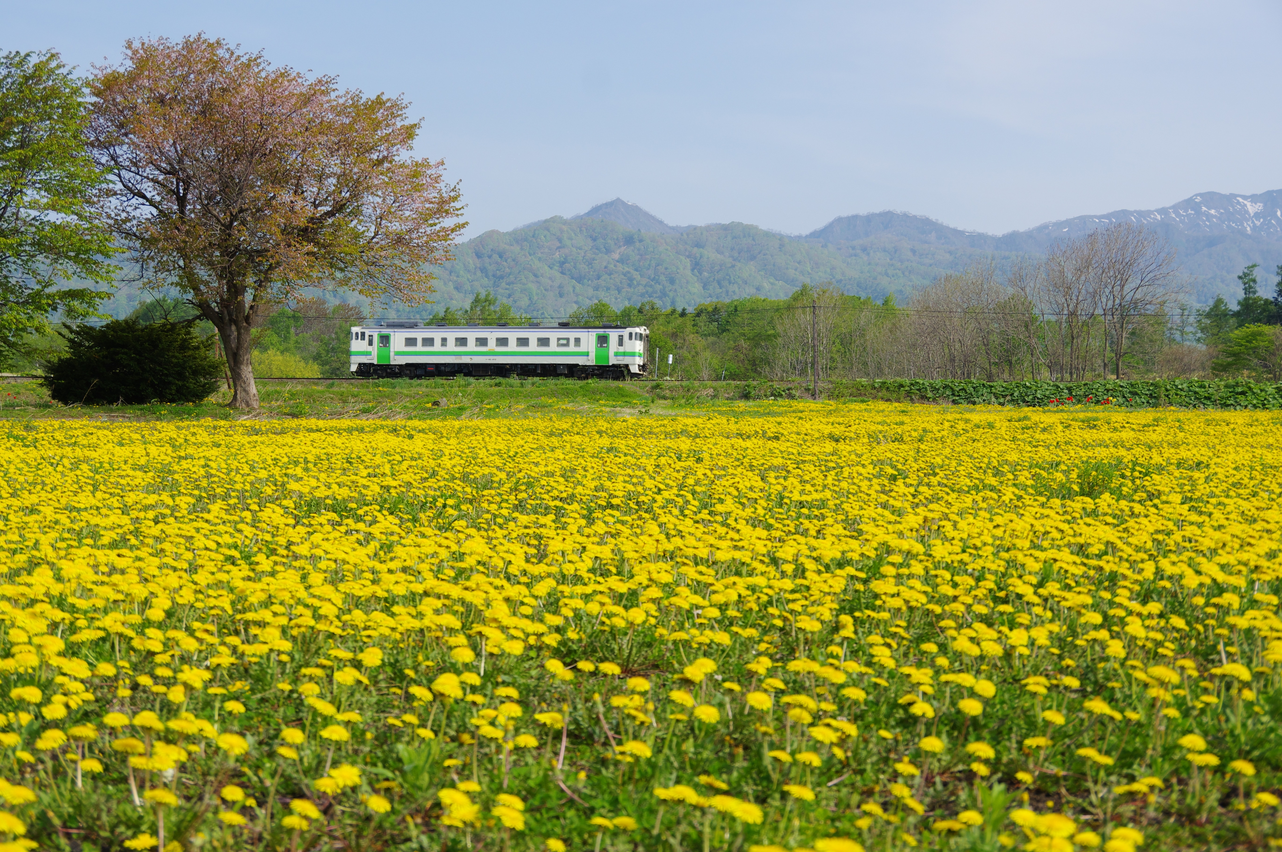 JUGEMテーマ:鉄道写真 こんにちは! 今日は昨日からの続きで5月18日の札沼線非電化区間での撮影のお話です。水鏡狙いで回5421Dと5422Dを撮影した後は豊ヶ岡−札比内間にある札比内小学校跡地へと向かいました。前回ここで撮った時はチューリップとキハ40のコラボレーションでしたが、今回は満開のタンポポ群とキハ40を撮ります。 浦臼へと向かって走る5423Dはちょっと引き気味に撮影。 F6.3、1/800秒、ISO200、60mm、露出補正±0、WB AWB、カスタムイメ...