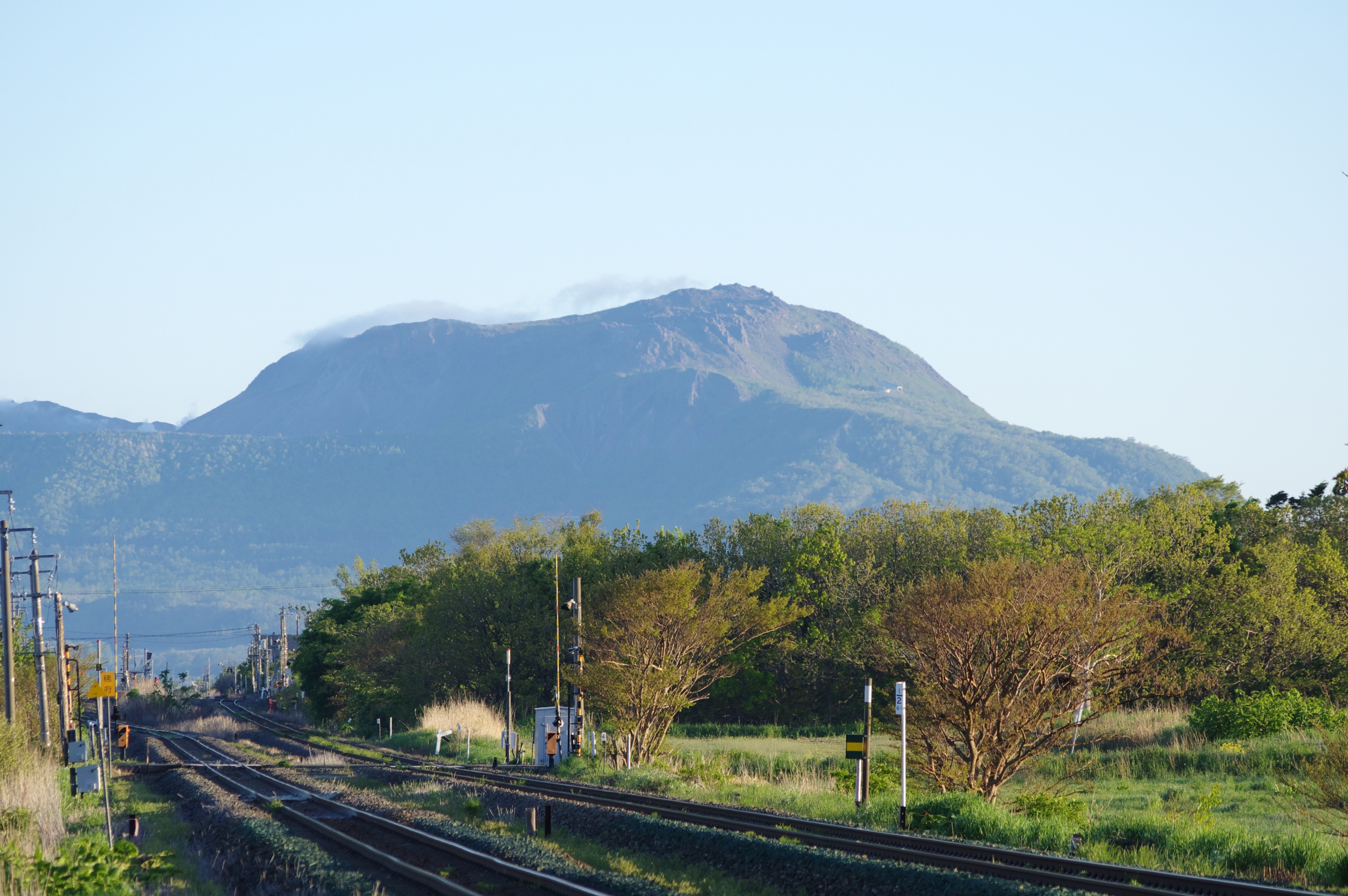 JUGEMテーマ:鉄道写真 こんにちは! ブラストワンピースが出走する日本ダービー当日、5月27日は早朝に733系3000番台6両編成×2(計12両)の甲種輸送がございました。この日は午前2時半前に自宅を出発し、室蘭本線・稀府−黄金間の有名撮影地へ向かいました。 こんな感じで有珠山をバックに列車撮影ができるポイントです。ポイント到着は午前4時半前でしたので、だいたい2時間程のドライブでした。 今回はバックショットも撮りたかったので手持...