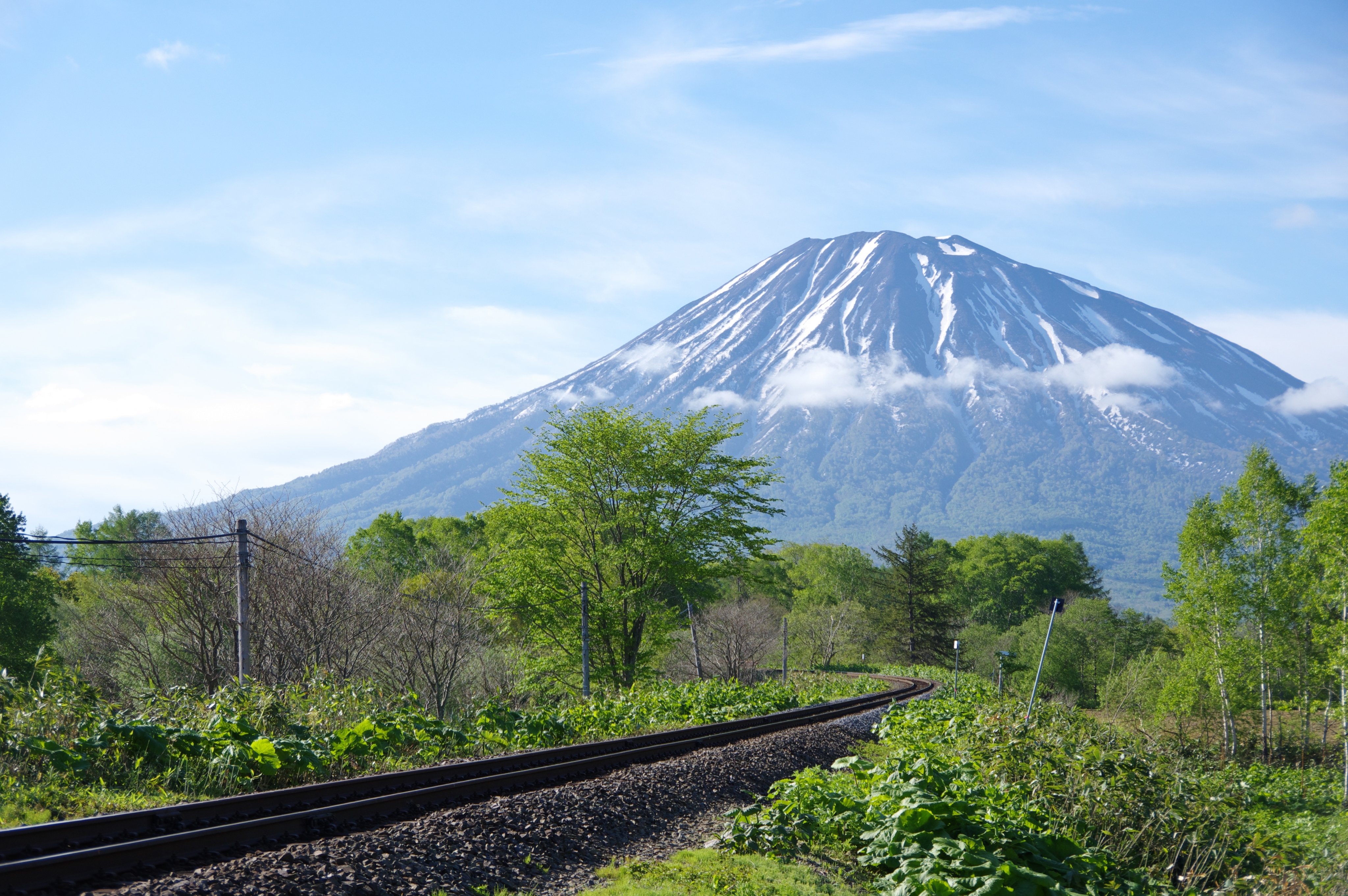JUGEMテーマ:鉄道写真 こんにちは! 5月27日早朝、室蘭本線・稀府−黄金間で733系3000番台 12両の甲種輸送の撮影に行ってきましたが、見事に失敗し、納得の1枚を撮ることが出来ず、非常に悔しい思いを抱きつつ帰路についていたのですが、その途中、あまりにも蝦夷富士・羊蹄山がハッキリと見えるし、時計を見れば快速ニセコライナーを撮ることができる時間だったので、倶知安−小沢間にある「北四線踏切」に寄り道してきました。 ご覧の通り、羊蹄山をバックに撮影ができる超有...