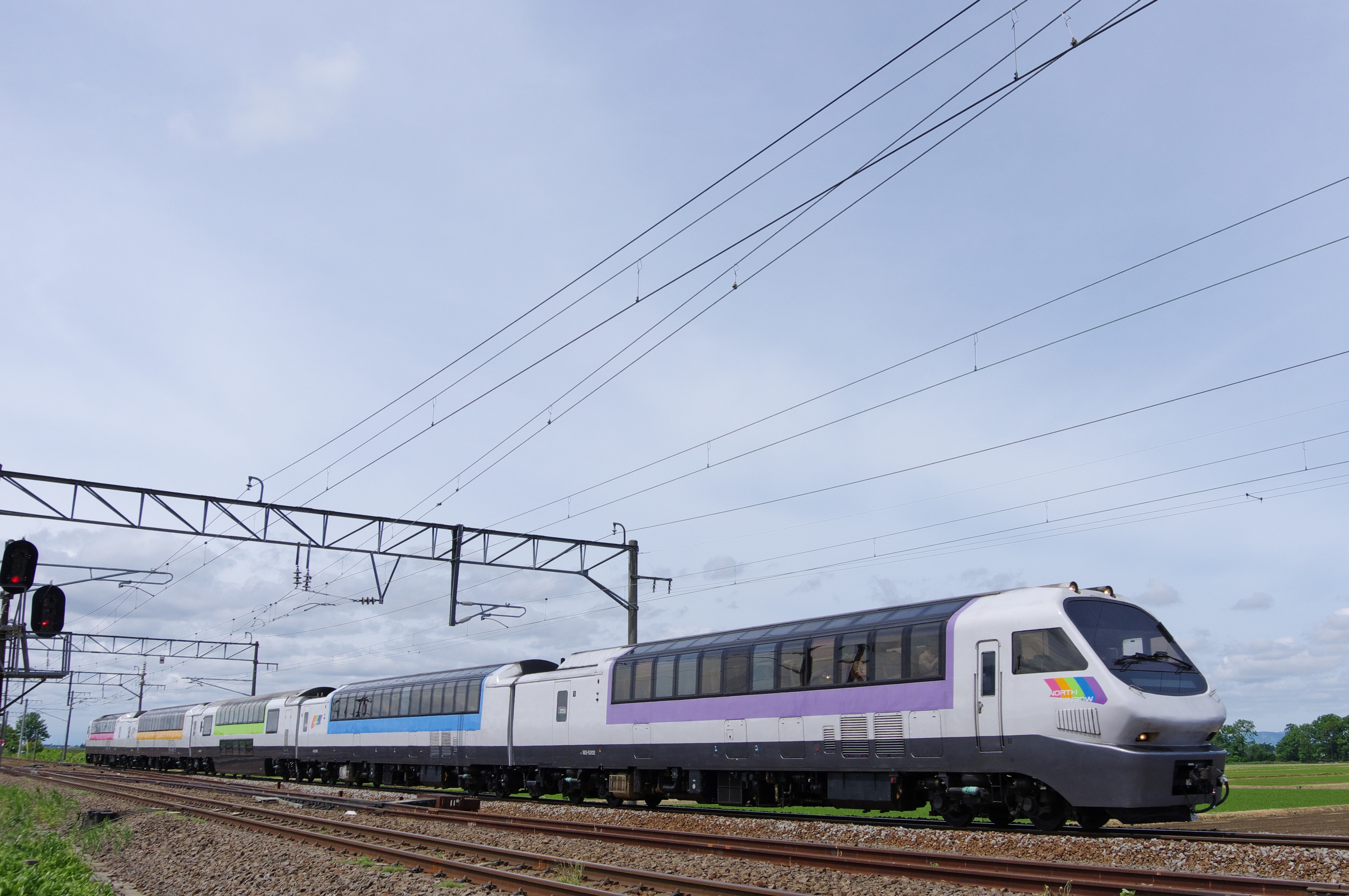 JUGEMテーマ:鉄道写真 こんにちは! 札沼線・豊ヶ岡駅でキハ40を撮影した後は札幌の実家へ帰ろうかと思ったのですが、ふと時計を見たらまだ午前9時前… この日は週末でノースレインボーエクスプレスがフラノラベンダーエクスプレス3号として走っていましたから、せっかくなので撮って帰ろうと思い、石狩川を渡って岩見沢・美唄方面へと車を走らせました。 7034D・フラノラベンダーエクスプレス3号は札幌駅を9:07に出発し、次の停車駅である岩見沢駅は30分後の9:37に出発します。最...