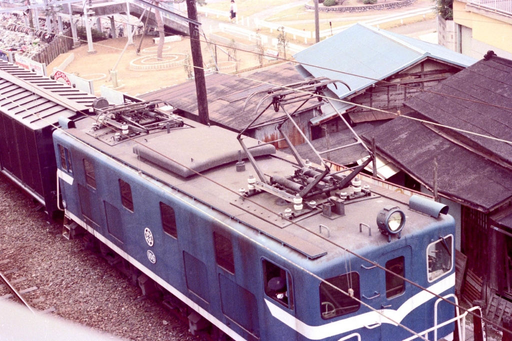 JUGEMテーマ:鉄道写真 1980年頃の広瀬河原でのスナップです。 既に廃車寸前のデキ6です。 横に連結されているのは、大井川鉄道から授受したED382で、 これも廃車寸前です。 EEの特徴であるベンチレーターが良い味を出しています。