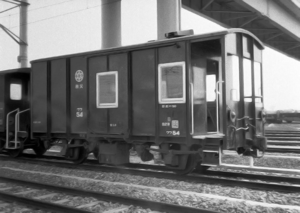 緩急車の最終形がスム4000から改造のワフ50でした。 この写真は1983年熊谷貨物ターミナルで、許可を得て撮影しました。 車内設備はョ8000並みの居住性抜群で、 今も三峰口駅で静態保存中の同車の室内を観覧できます。