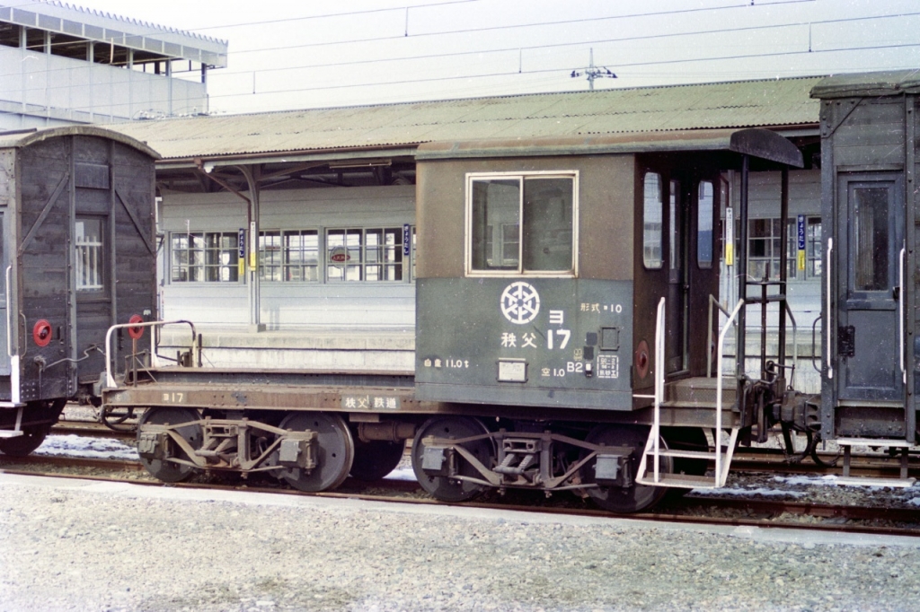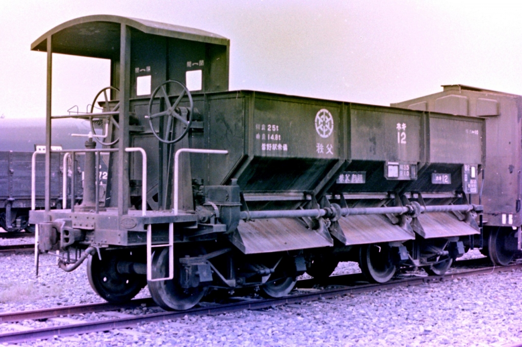 JUGEMテーマ:鉄道写真 秩父鉄道の鉱石輸送は、現在稼働中のヲキ100、ヲキフ100の前に、初代ヲキ1、ヲキフ1形により昭和30年代まで運用していました。 この写真は1973年頃、広瀬川原車両基地で撮影したものです。ネガを紛失したので、プリントをスキャンしています。 車掌室は木造となっています。 このヲキフを改造して、ホキ11、ホキ12、ヨ10型が生まれています。