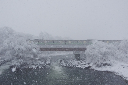 JUGEMテーマ:鉄道写真 こんにちは! 先日の日曜日は冬型の気圧配置ということで、北海道の日本海側では40cm位の雪が降るでしょうという大雪注意の予報が出ておりました。ところが朝早起きしてみると、雪が降っていなかったので気になっていたポイントに行って、キハ201系気動車の撮影を行ないました。 そのポイントというのは然別ー仁木間にある清流・余市川にかかる鉄橋です。実は10/29にニセコエクスプレスに乗車した際、ここで何人かの撮り鉄さんが撮影を行なっていたので、どんな感じ...