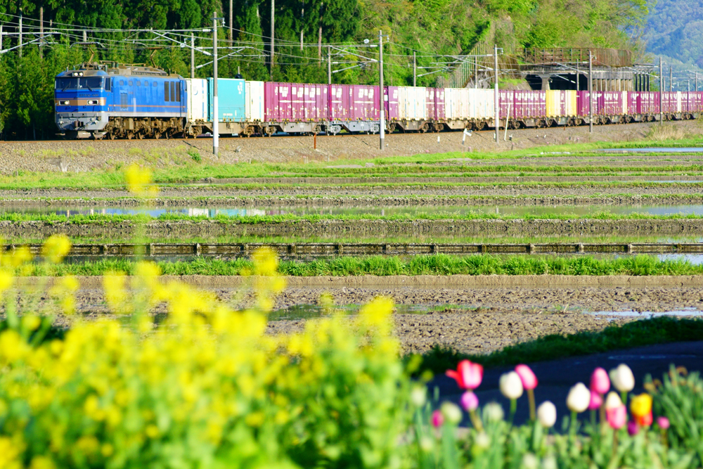 JUGEMテーマ:鉄道写真 おうちの庭先に菜の花とty−リップが咲いていましたのでそれを全景に撮って見ました。
