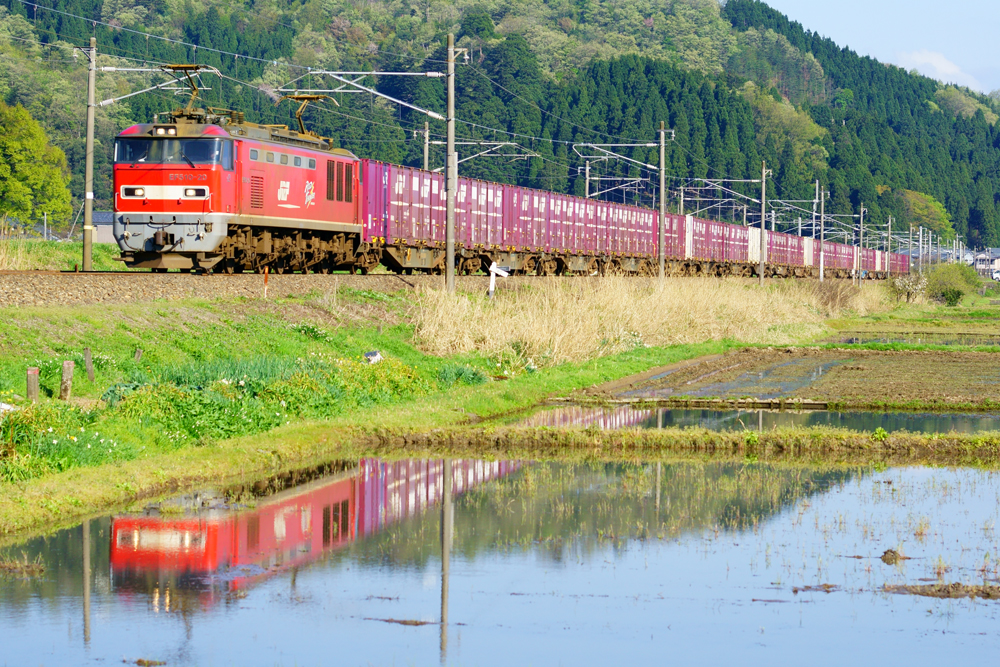 JUGEMテーマ:鉄道写真 田んぼに水がはいるようになりました。 水鏡を狙いましたが風が出て水面はやや乱れてしまいました。